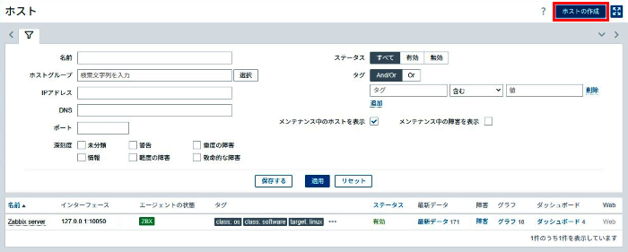 ホスト画面に移動したら右上端にあるホストの作成ボタンを押します。
