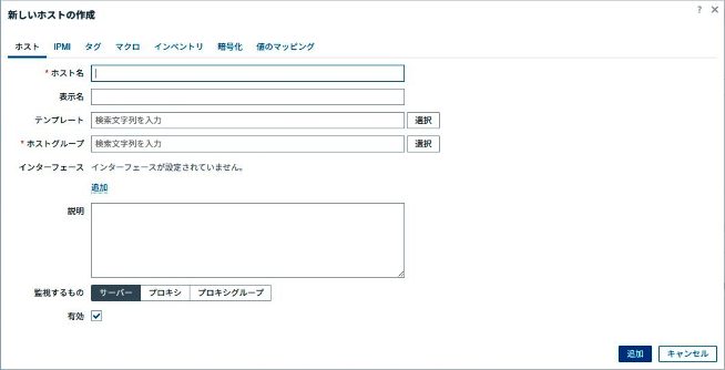新規ホストの作成画面が表示されます。